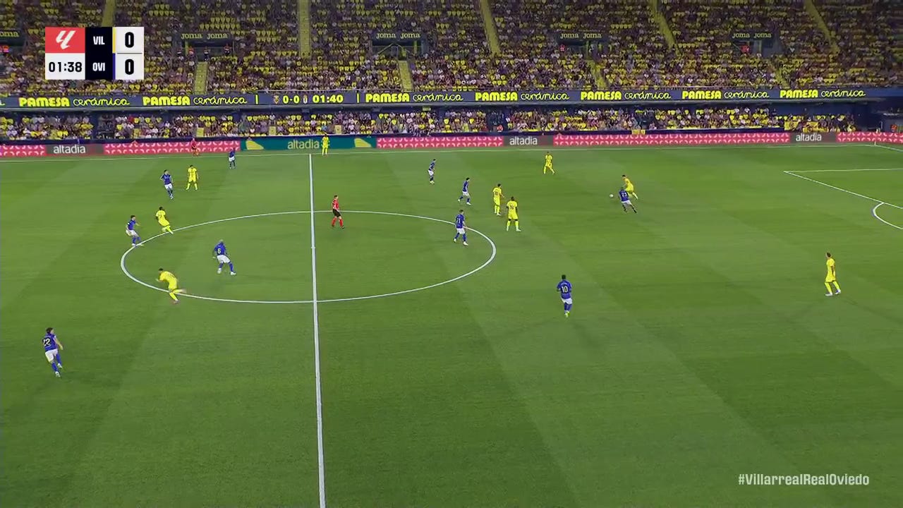 Although Aaron Éscandell got out in time to sweep up the ball from Juan Foyth, Pino’s runs were an immediate source of pain for Oviedo.