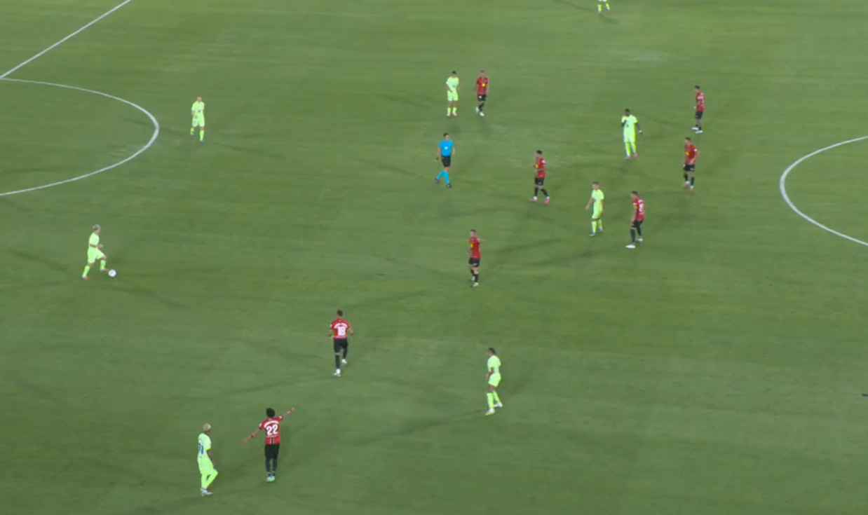 Although he had got some practice runs in pre-season, the ‘Baena role’ represents a pretty marked shift for Pino. It takes him from being a largely touchline winger into central areas a lot more, given Sergi Cardona’s prominence in wide areas and the difference between left-right midfield roles in this side (left tucks in, right stretches the play wide).
