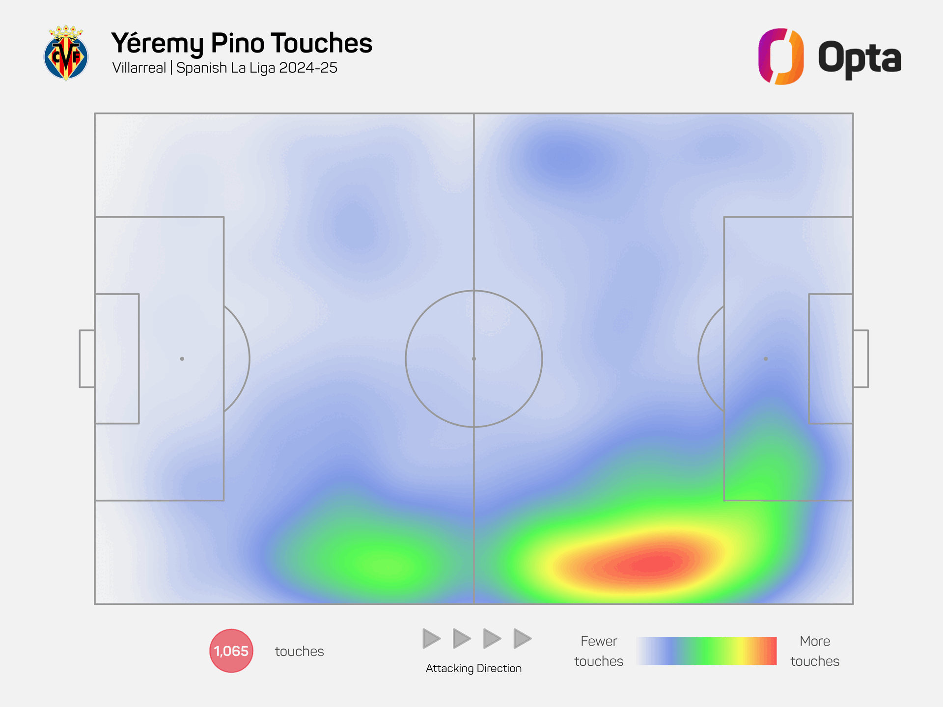 Pino did alternate inside-out duties with Cardona throughout Friday night’s game, but we’ve probably never seen the Canarian quite so active from a central role in LaLiga. Indeed, in what was his 133rd top-flight game, Pino’s 75 touches and 48 completed passes were both his most in a single LaLiga match to date.