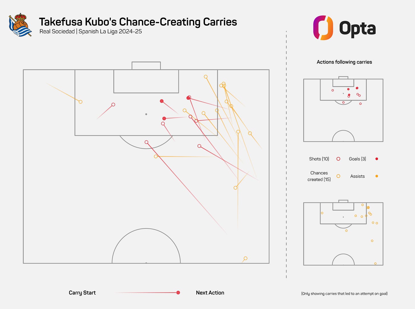 Kubo has become the only constant avenue in a team whose attack can’t be allowed to falter, and one whose resources for offsetting their low-scoring nature aren’t as dialled in as they once were.
