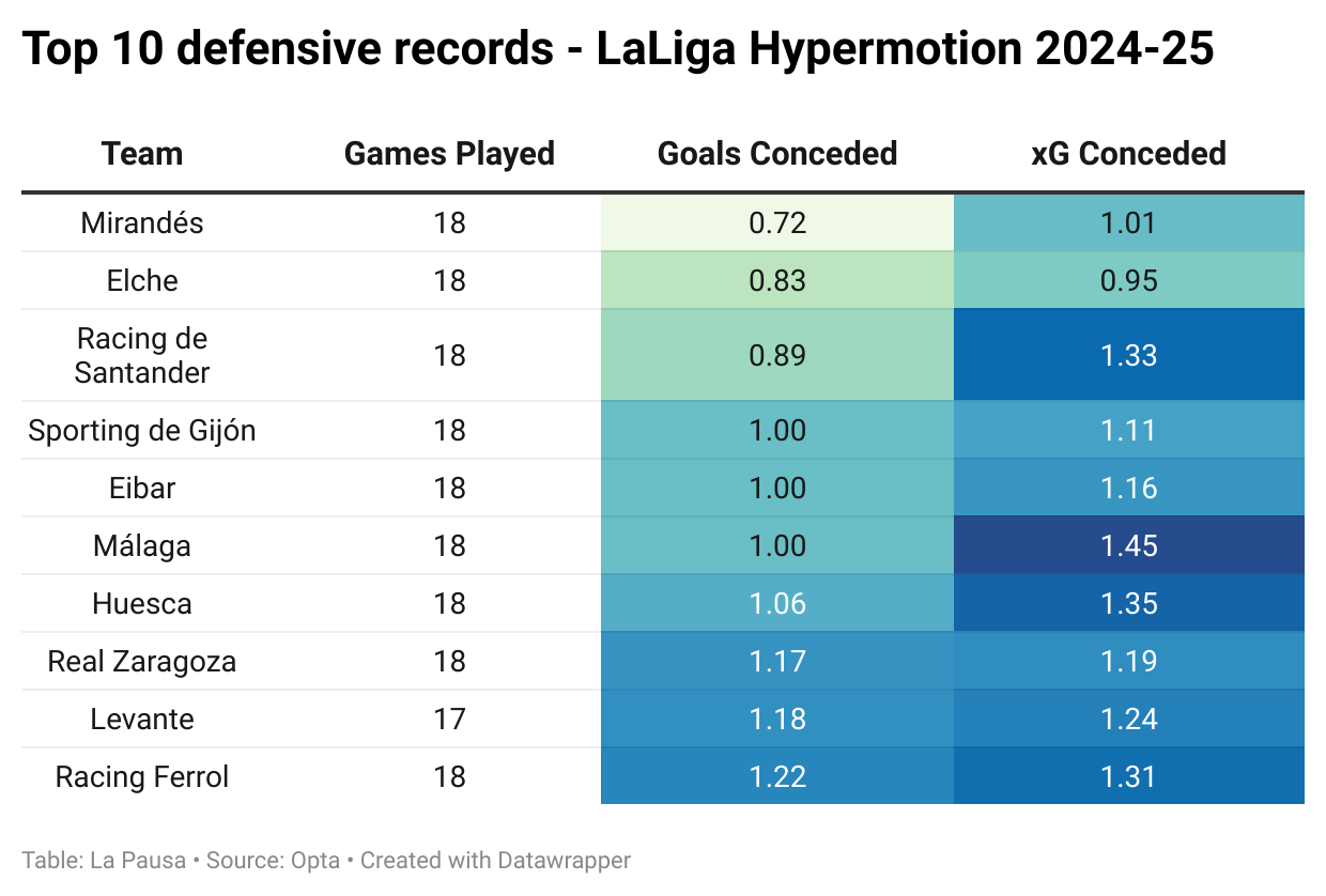 Mirandés – as you may have heard – are having somewhat of a miracle season so far. After beginning 2024-25 by cancelling friendlies for the fact of not having enough players to pick from, they currently occupy one of the two automatic promotion spots to LaLiga. If someone were to do the calculation now, the ratio between their budget and performance would likely break the scale.